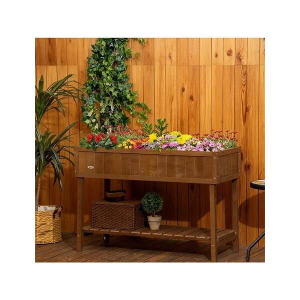 43 in. x 18 in. x 30 in. Brown Raised Garden Bed with 8 Pockets and 1 Shelf, Wooden Elevated Planter Box with Legs