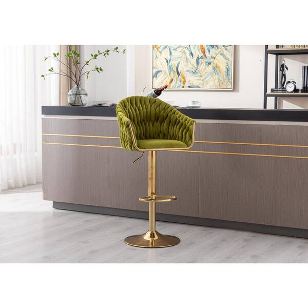 44.09 in. Olive Metal Frame Vintage Bar Stools with Back and Footrest
