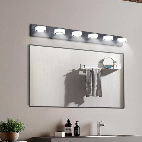 44.9 in. 6-Light Modern Black Vanity Light with Acrylic Lampshade and Adjustable Light Angle