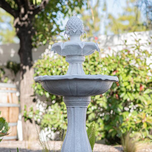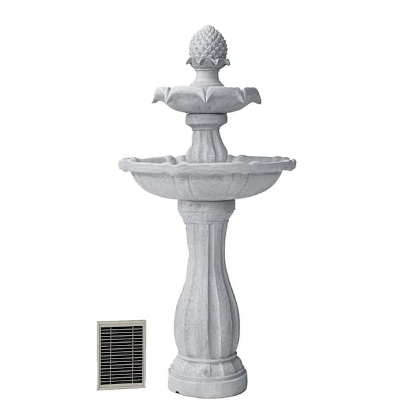 44 in H White Fiberglass/Resin 2-Tier Solar Water Fountain w/Solar Panel and Auto-Shut Off Pump, Solar Garden Fountain