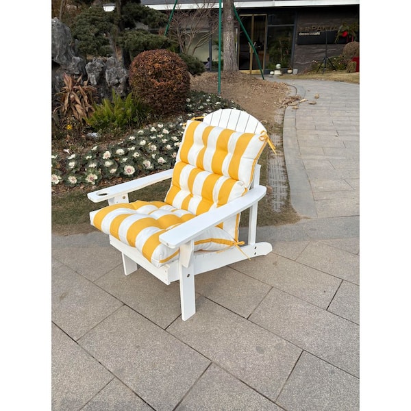 44 x 22 Replacement High Back Patio Chair Cushions, 2-Pieces Outdoor Tufted Rocking Chair Cushions, Yellow and White
