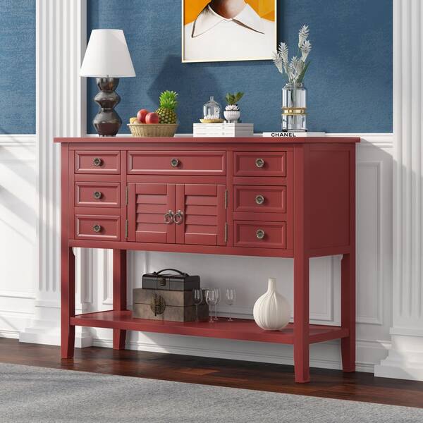 45.3 in. Red Rectangle Wood Console Table Sofa Table for Living Room with 7-Drawers, 1-Cabinet and 1-Shelf