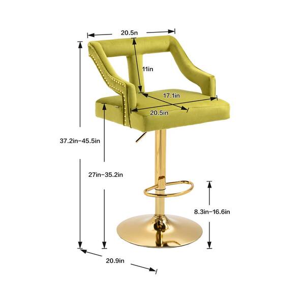 45.5 in. Green Hollowed Out Low Back Metal Frame Adjustable Height Counter Vintage Bar Stools with Footrest (Set of 1)