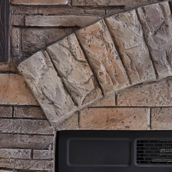 45 in. Freestanding Faux Stone Infrared Electric Fireplace in Tan with Mantel