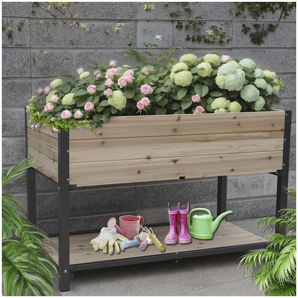 45 in. x 23 in. x 29 in. Wood Raised Garden Bed, 45 in. Iron-Wood Combined Growing Beds with Feet and Storage Racks