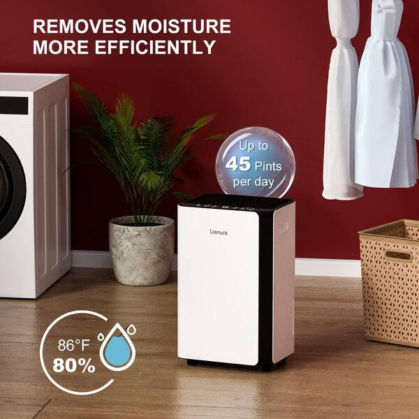 45 pt. 3500 sq. ft Dehumidifiers in White with Drain Hose Intelligent Humidity Control Auto or Manual Drainage 24H Timer
