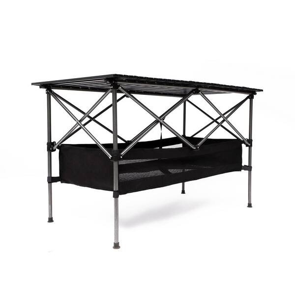 46.46 in. L Black Plus Green 3-Piece Aluminum Folding Outdoor Patio Conversation Table and Chair Set