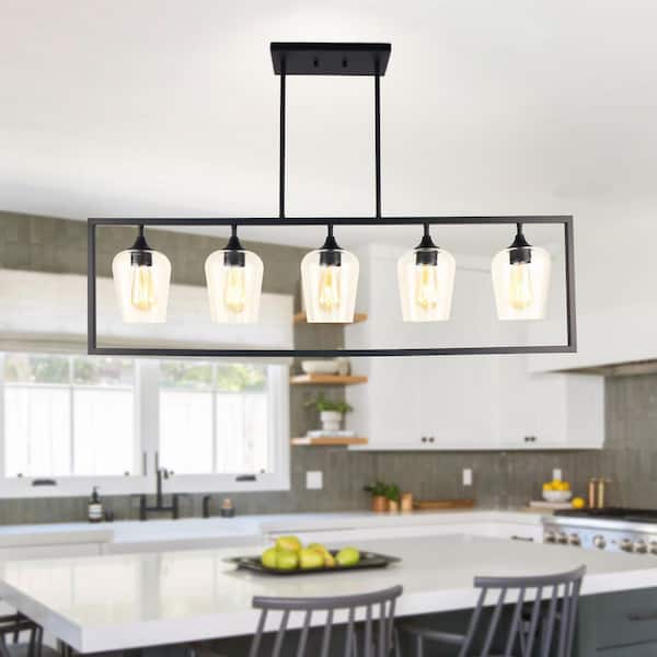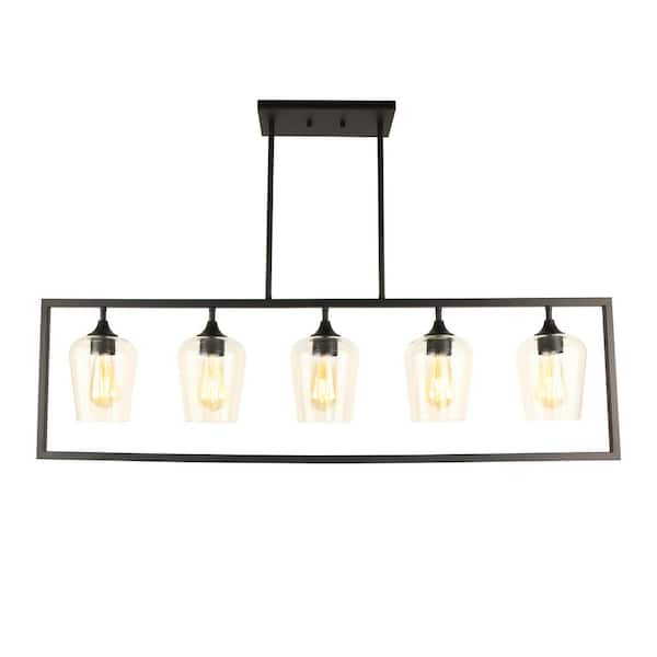 46.75 in. 5-Light Black Rectangle Pendant Light with Clear Glass Shade