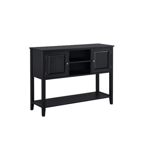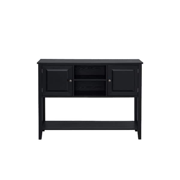 46 in. Black Rustic Rectangle Wood Console Table Entryway Table with 2 Storage Racks