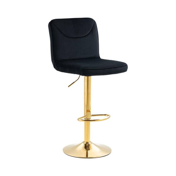 46 in. Black Velvet Metal Frame Adjustable Cushioned Bar Stools with Back and Footrest (Set of 2)