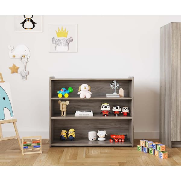 46 in. Wide 3-Level Double Sided School Age Storage Shelf Kids Bookcase Toy Storage Organizer, Shadow Elm Gray