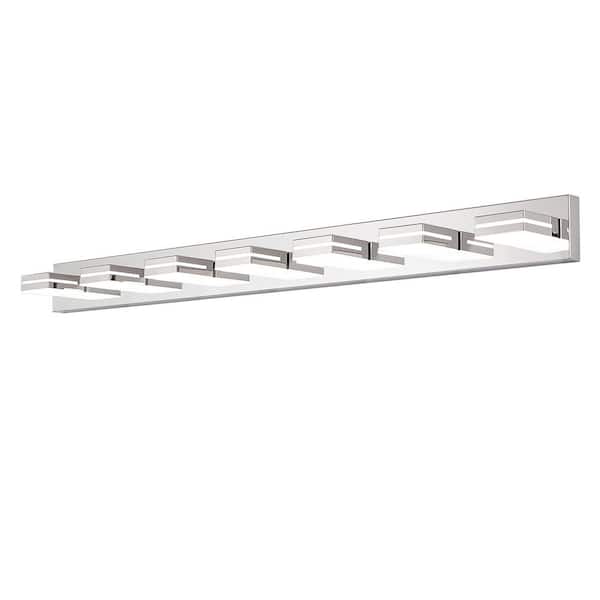 47.2 in. Modern Minimalist Chrome 6-Light Vanity LED Light with Acrylic Lampshade for Indoor Room