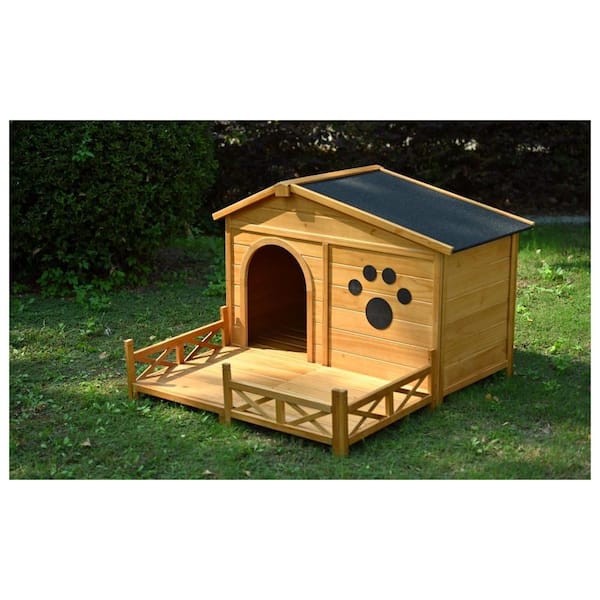 47.2 in. W Large Wooden Dog House Outdoor Indoor Dog Crate Cabin Style with Porch 2 Doors in Brown