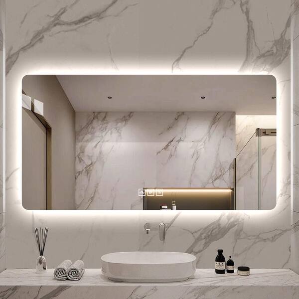 47.2 in. W x 23.6 in. H Rectangular Bath Mirror, Corrosion-Resistant with 3-Color Dimmable, 1-Touch Demist Function