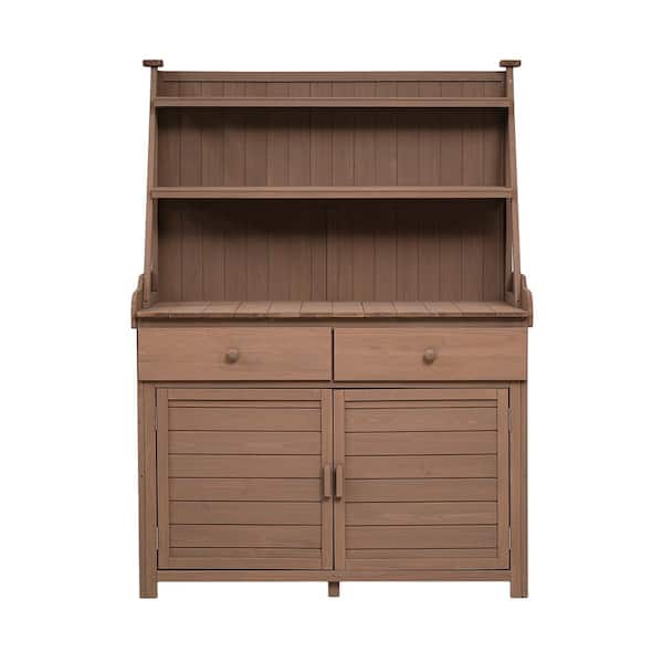 47.2 in. W x 65 in. H Brown Fir Wood Garden Potting Bench Table with Storage Shelf, Drawer and Cabinet