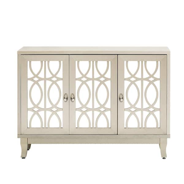 47.20 in. W x 15.60 in. D x 33.90 in. H Champagne Beige 3 Door Mirrored Linen Cabinet with Silver Handle