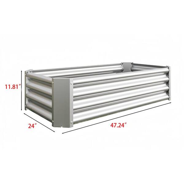 47.24 in. x 24 in. x 11. 81 in. Rectangle Metal Raised Garden Bed in Silver