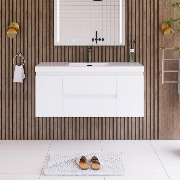47.3 in. W x 19.7 in. D x 22.5 in. H Wall Mounted Bath Vanity in. White with White Cultured Marble Top