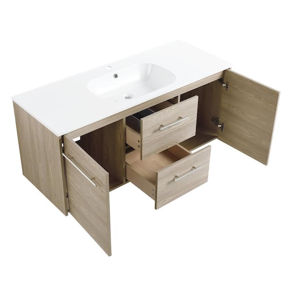 47.4 in. W x 18.1 in. D x 20.2 in. H Bathroom Storage Wall Cabinet in White Oak with White Gel Basin