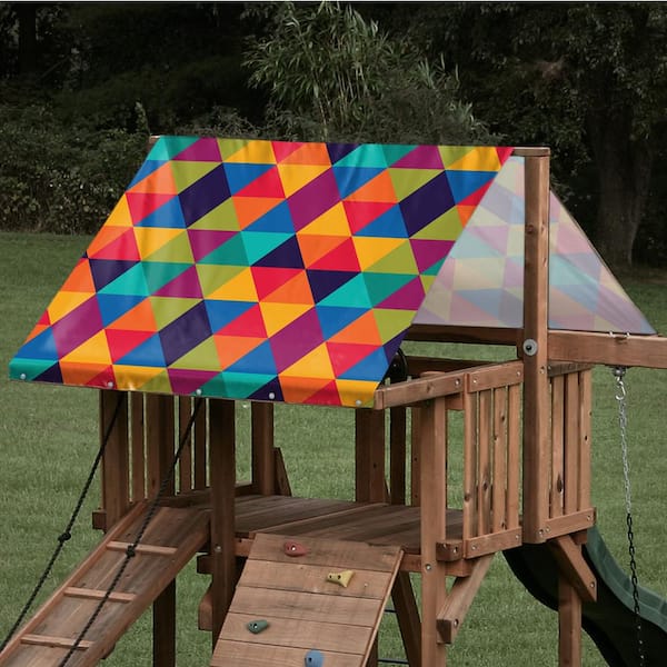 47.5 in. x 125.5 in. Rainbow Triangle Playset Tarp (026): 13 oz. Vinyl Canopy Roof for Playsets