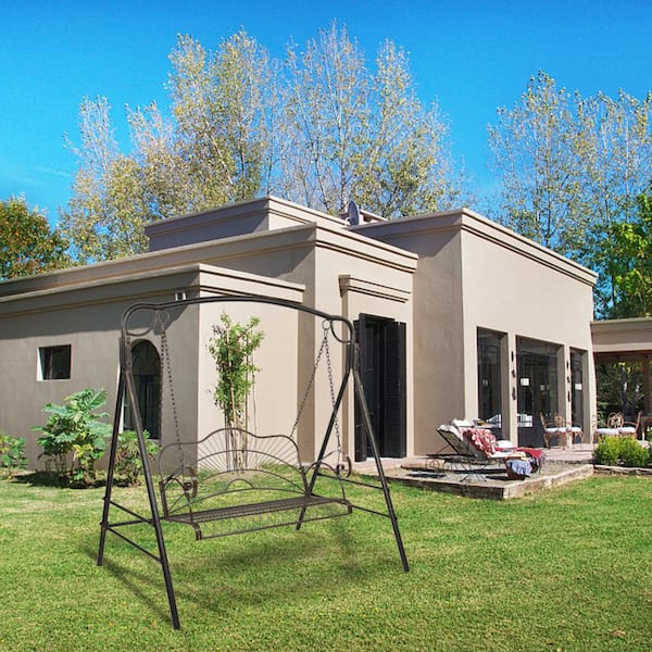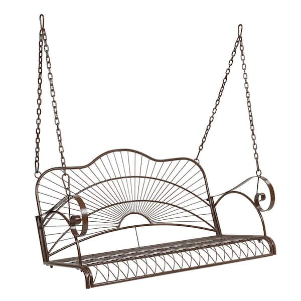 47 in. 2-Person Brown Metal Porch Swing with Adjustable Safety Chains