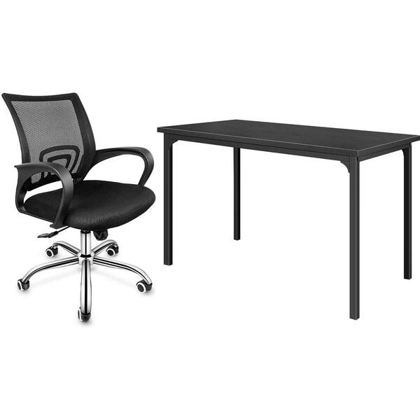 47 in. Rectangular Black Wood Computer Desk with Black Metal Office Chair
