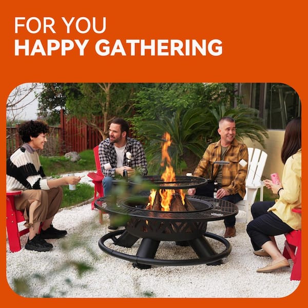 47 in. Wood Burning Fire Pit Outdoor Backyard Patio Fire Pit with Cooking Grill Grate