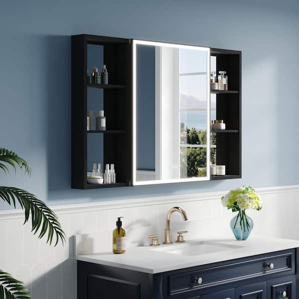 48.01 in. W x 30 in. H Rectangular Black Aluminum Recessed/Surface Mount LED Medicine Cabinet with Mirror, Right Hinge