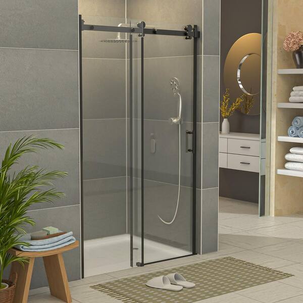 48.8 in. W x 76 in. H Frameless Single Sliding Shower Door in Matte Black w/ 5/16 in. Clear Tempered Glass and Handle
