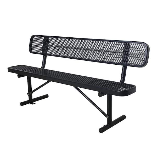 48 in. 2-Person Black Thermoplastic Coated Metal Outdoor Garden Bench Park Bench, Picnic Bench, Commercial-Grade Seating