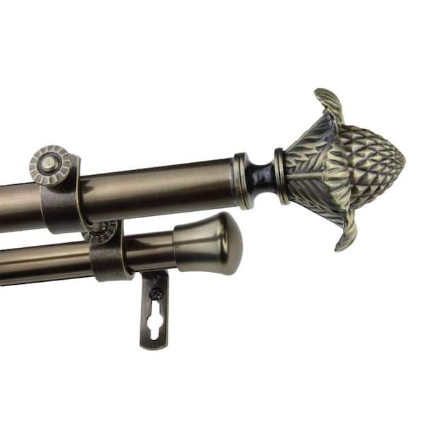 48 in. - 84 in. Adjustable 13/16 in. Double Curtain Rod in Antique Brass with Florian Finials