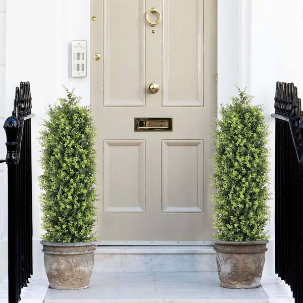 48 in. Artificial Topiary Cedar Tree, Fake Grass Evergreen Plants for Porch Patio Decor (Set of 2)