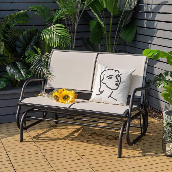 48 in. Beige Metal Outdoor Glider with Steel Frame for Patio, Backyard, Poolside, Lawn