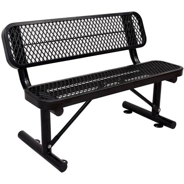 48 in. Black Metal Outdoor Bench with Backrest
