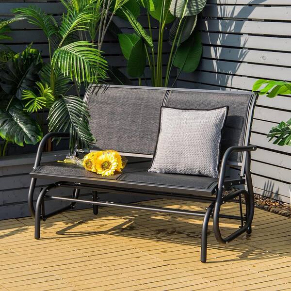 48 in. Black Metal Outdoor Glider with Steel Frame for Patio, Backyard, Poolside, Lawn