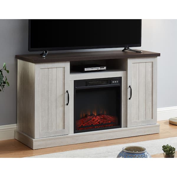48 in. Freestanding Wooden Electric Fireplace TV Stand in Stone Gray