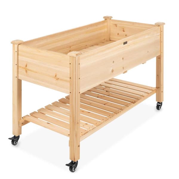 48 in. L x 23 in. W x 33 in. H Mobile Natural Wood Raised Garden Bed