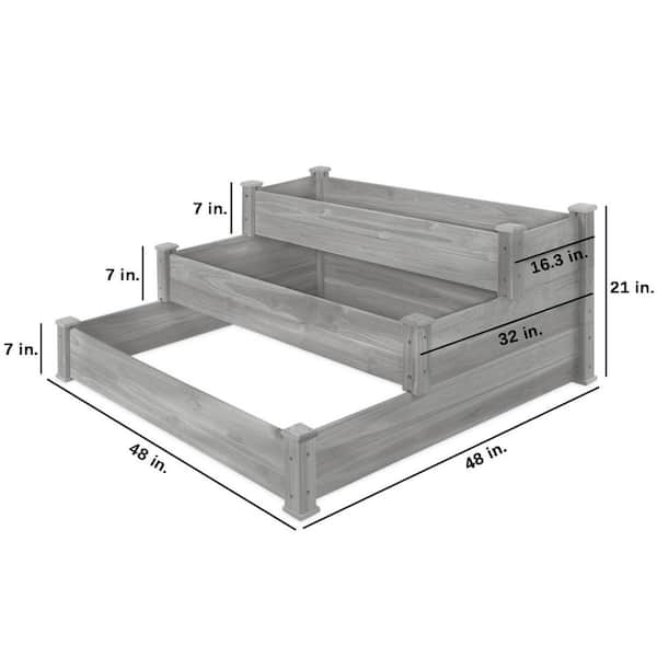 48 in. L x 48 in. W x 21 in. H Stackable Gray Wood Raised Garden Bed