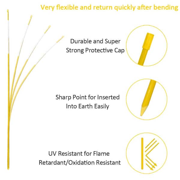 48 in. Reflective Driveway Markers Yellow 50-Pack 5/16 in. Dia. Driveway Poles for Easy Visibility at Night