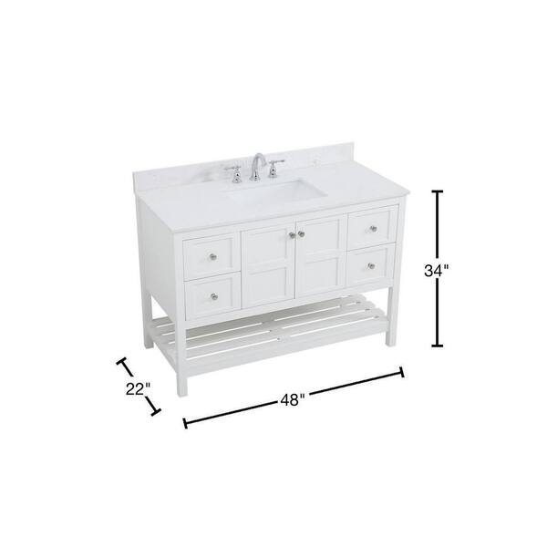 48 in. W Single Bath Vanity in White with Engineered Stone Vanity Top in White with White Basin with Backsplash