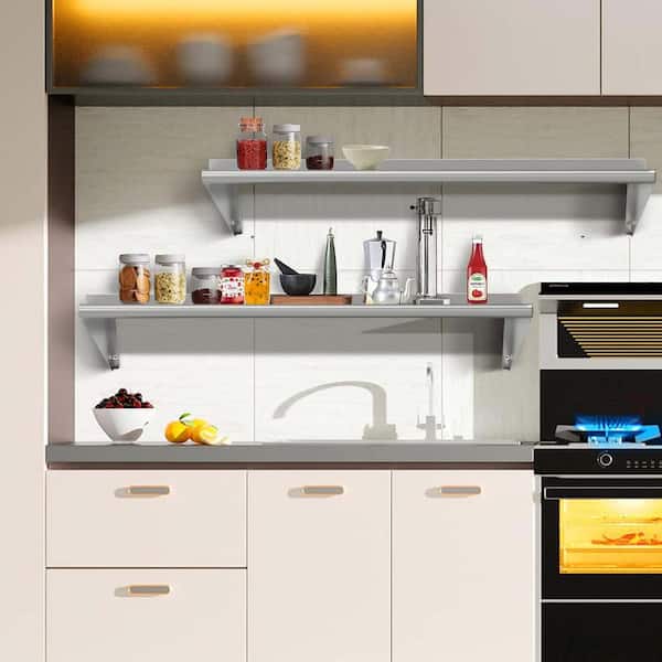 48 in. W x 12 in. D Silver Stainless Steel Floating Shelves Wall Mounted Decorative Wall Shelf (2-Pack)