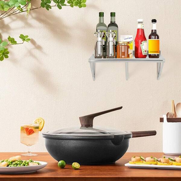 48 in.W x 18 in. D Sliver Stainless Steel Garage Wall ShelfWall-Mounted Shelving with Backsplash 2 Brackets for Kitchen