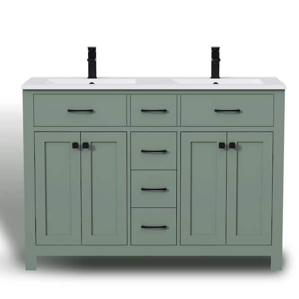 48 in. W x 18 in. D x 34 in. H 2-Sink Freestanding Bath Vanity in Green with White SMC Resin Top and Drain Faucet Set