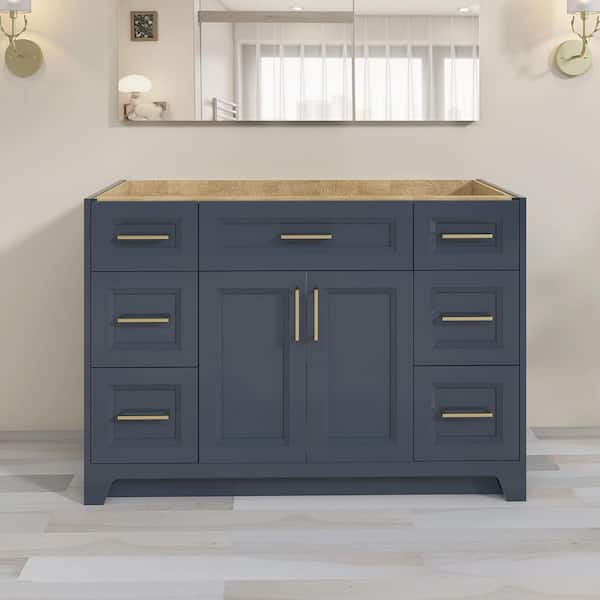 48 in. W x 21.5 in. D x 33.5 in. H Bath Vanity Cabinet Without Top Bathroom Vanity Freestanding Solid Wood in Navy Blue