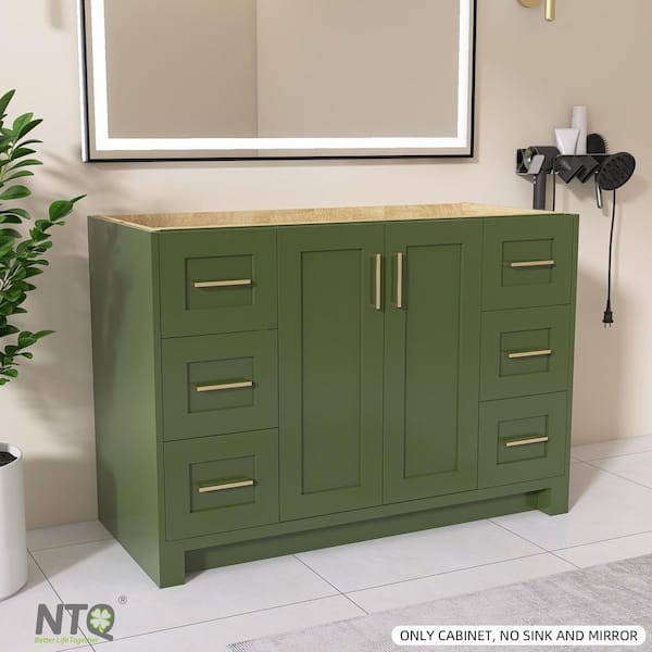48 in. W x 21.5 in. D x 33.5 in. H Bath Vanity Cabinet without Top Bathroom Vanity Freestanding Solid Wood in Green