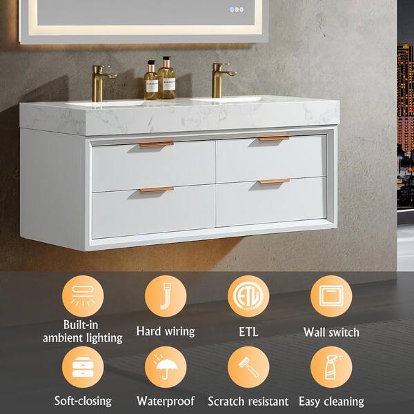 48 in. W x 21 in. D x 21 in. H Floating Bath Vanity in White with White Engineer Stone Top