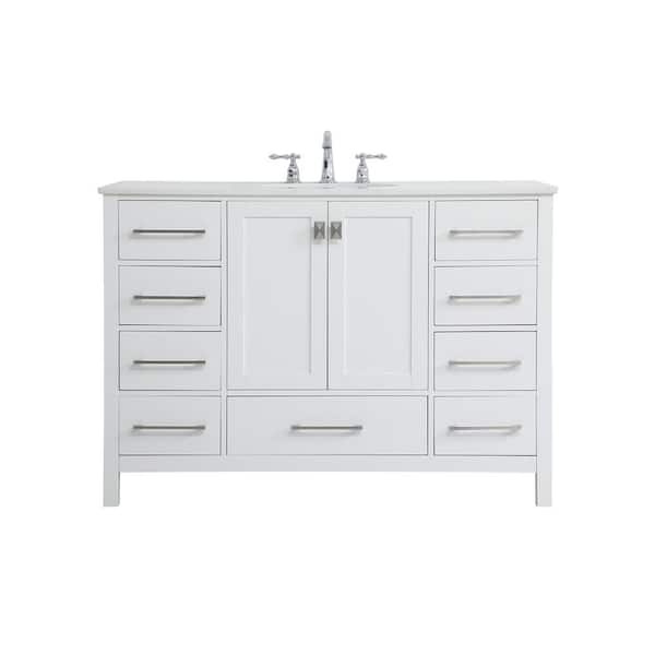 48 in. W x 22 in. D x 34 in. H Single Bathroom Vanity in White with Engineered Stone Top in Calacatta with White Basin
