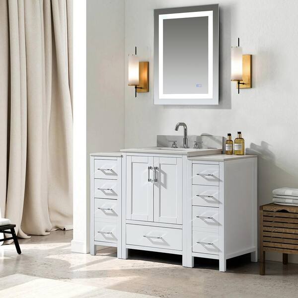 48 in. W x 22 in. D x 34 in. H Undermount Single Sink Freestanding Bath Vanity in White with White Engineer Top