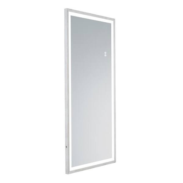 48 in. W x 22 in. H Pastoral Wood Rectangular Frame Full-Length Floor Mirror with Dual Color LED Dimming