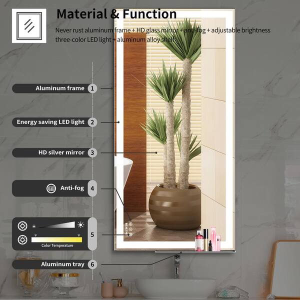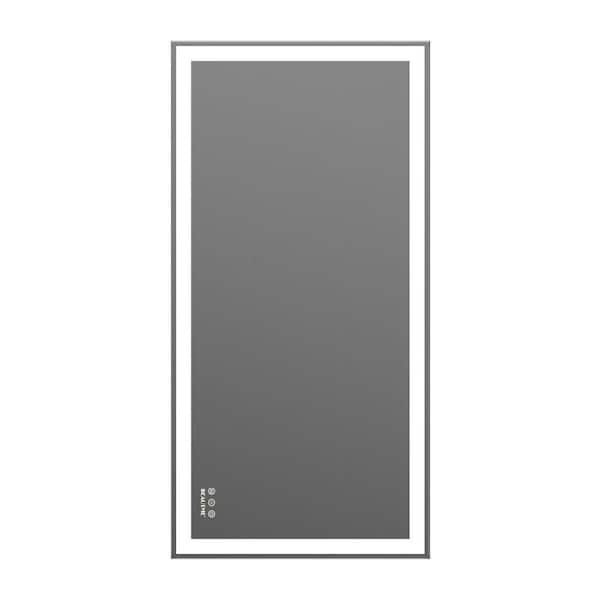 48 in. W x 24 in. H Rectangular Framed Wall Bathroom Vanity Mirror in Silver with LED Lights, Full Length Mirror